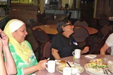 WIN members chat with members of the Board of the Islamic Society of Sarasota Bradenton at a March 2024 iftar.